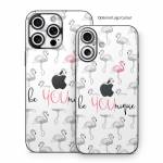 iStyles iPhone 16 Series Skin design of White, Organism, Mushroom, Line, Font, Bird, Art, Illustration, Pattern, Line art, with white, black, pink, gray colors, and tagged with signs, animals, patterns, bird, flamingo, grey, pink.