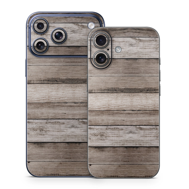 iStyles iPhone 17 Series Skin design of Wood, Plank, Wood stain, Hardwood, Line, Pattern, Floor, Lumber, Wood flooring, Plywood, with brown, black colors, and tagged with lookslike, patterns, office.