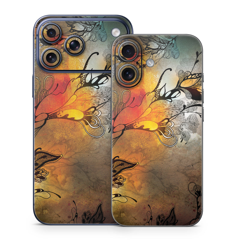 iStyles iPhone 17 Series Skin design of Yellow, Orange, Art, Branch, Leaf, Graphic design, Visual arts, Pattern, Design, Modern art, with black, red, orange, yellow colors, and tagged with abstract.