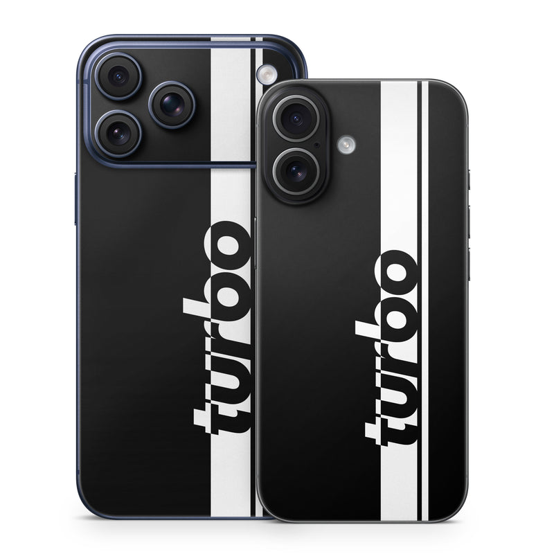 iStyles iPhone 17 Series Skin design of Font, Tints and shades, Rectangle, Electric blue, Logo, Brand, Graphics, Pattern, Darkness, Monochrome photography, with black, white colors, and tagged with signs, lookslike, turbo, racecar.