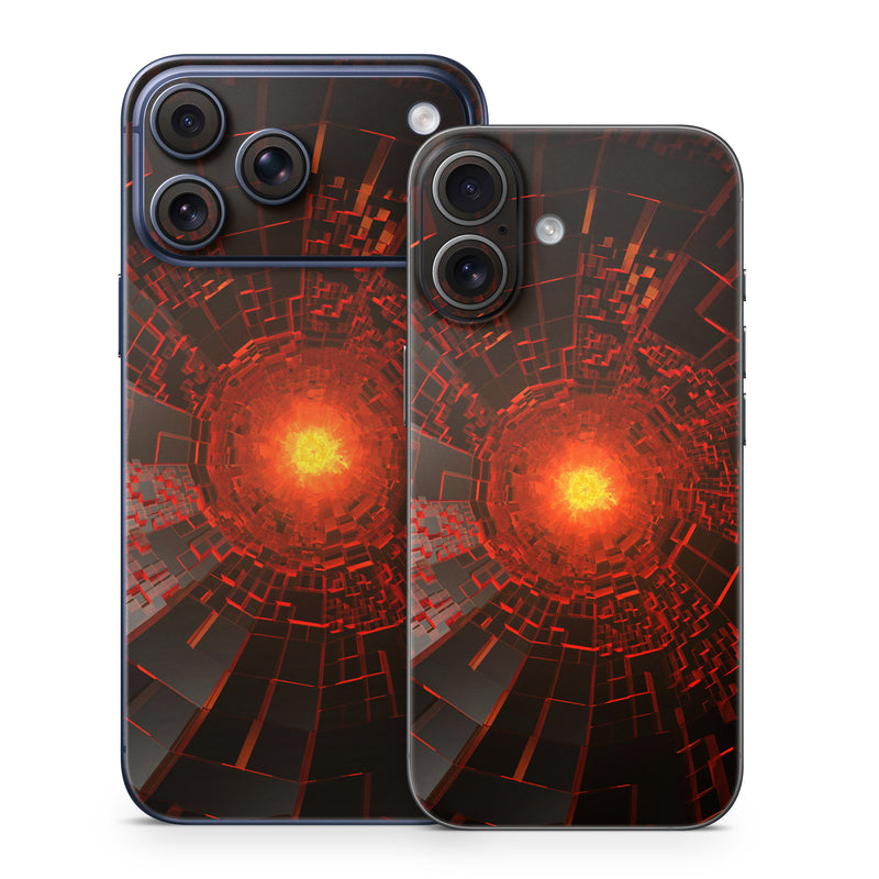 iStyles iPhone 17 Series Skin design of Red, Fractal art, Light, Circle, Design, Art, Graphics, Symmetry, Pattern, Space, with black, red colors, and tagged with patterns.