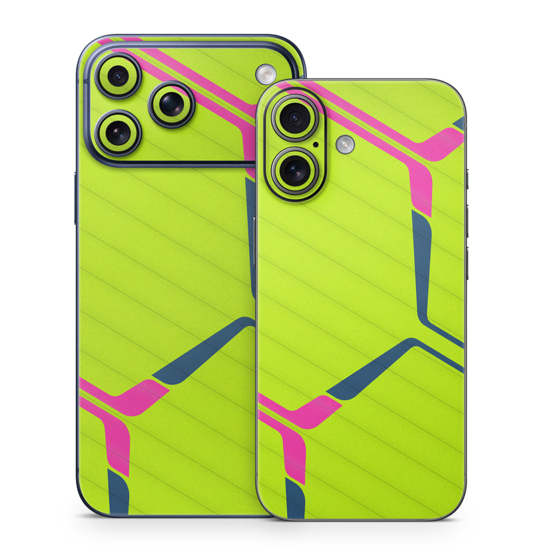 iStyles iPhone 17 Series Skin design of Colorfulness, Triangle, Font, Parallel, Symmetry, Tints and shades, Pattern, Electric blue, Slope, Magenta, with green, pink, blue colors, and tagged with patterns, hexagon, pattern, lines.