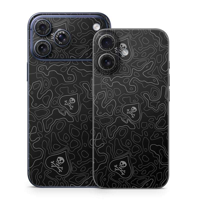iStyles iPhone 17 Series Skin design of Art, Pattern, Rectangle, Circle, Visual arts, Font, Monochrome, Electric blue, Event, Wallpaper, with black, gray colors, and tagged with patterns, skulls, military, athlete, fitness, gym, skull, skulls, spade, topography.