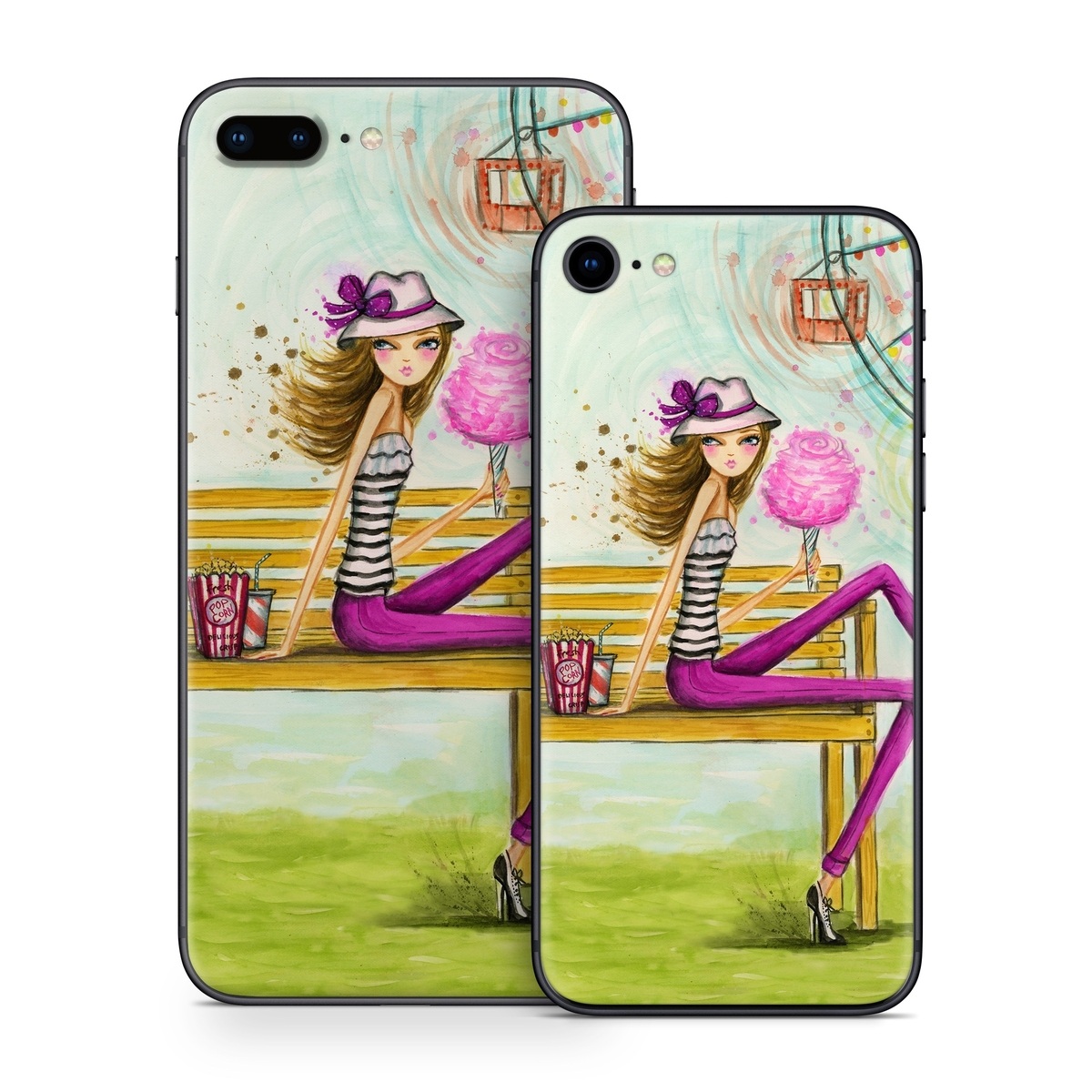 iStyles iPhone 8 Series Skin design of Illustration, Fashion illustration, Art, Sitting, Watercolor paint, Plant, Graphic design, Style, Painting, with green, yellow, blue, pink, purple, black, white, orange colors, and tagged with fashion, people, objects.