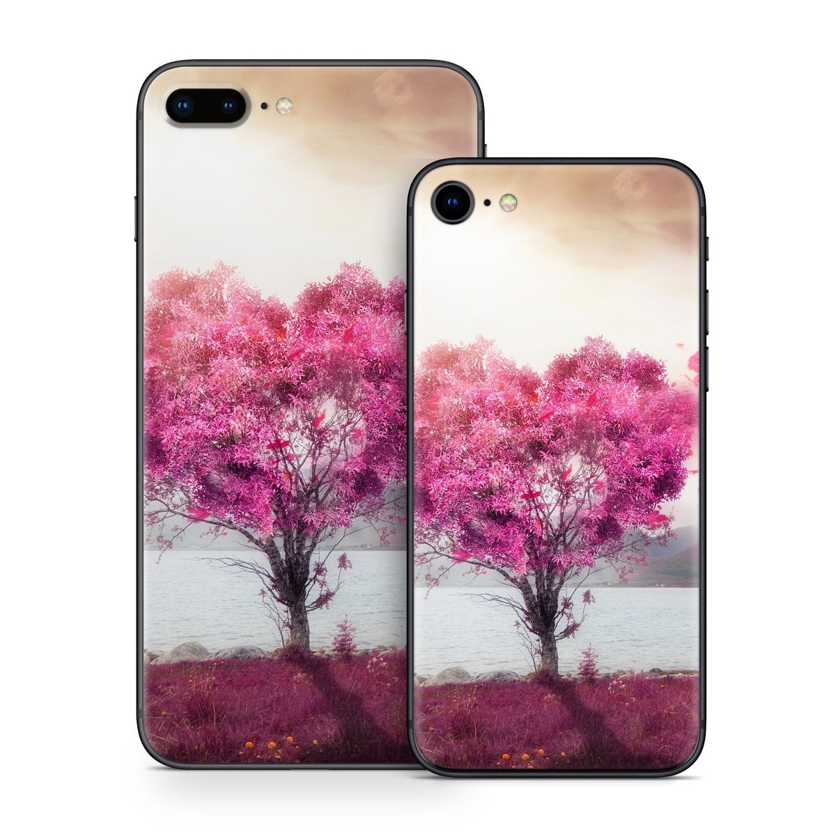 iStyles iPhone 8 Series Skin design of Sky, Nature, Natural landscape, Pink, Tree, Spring, Purple, Landscape, Cloud, Magenta, with pink, yellow, blue, black, gray colors, and tagged with nature, photos, bright, landscape, nature, outdoors, photo, photography, tree, whimsical.