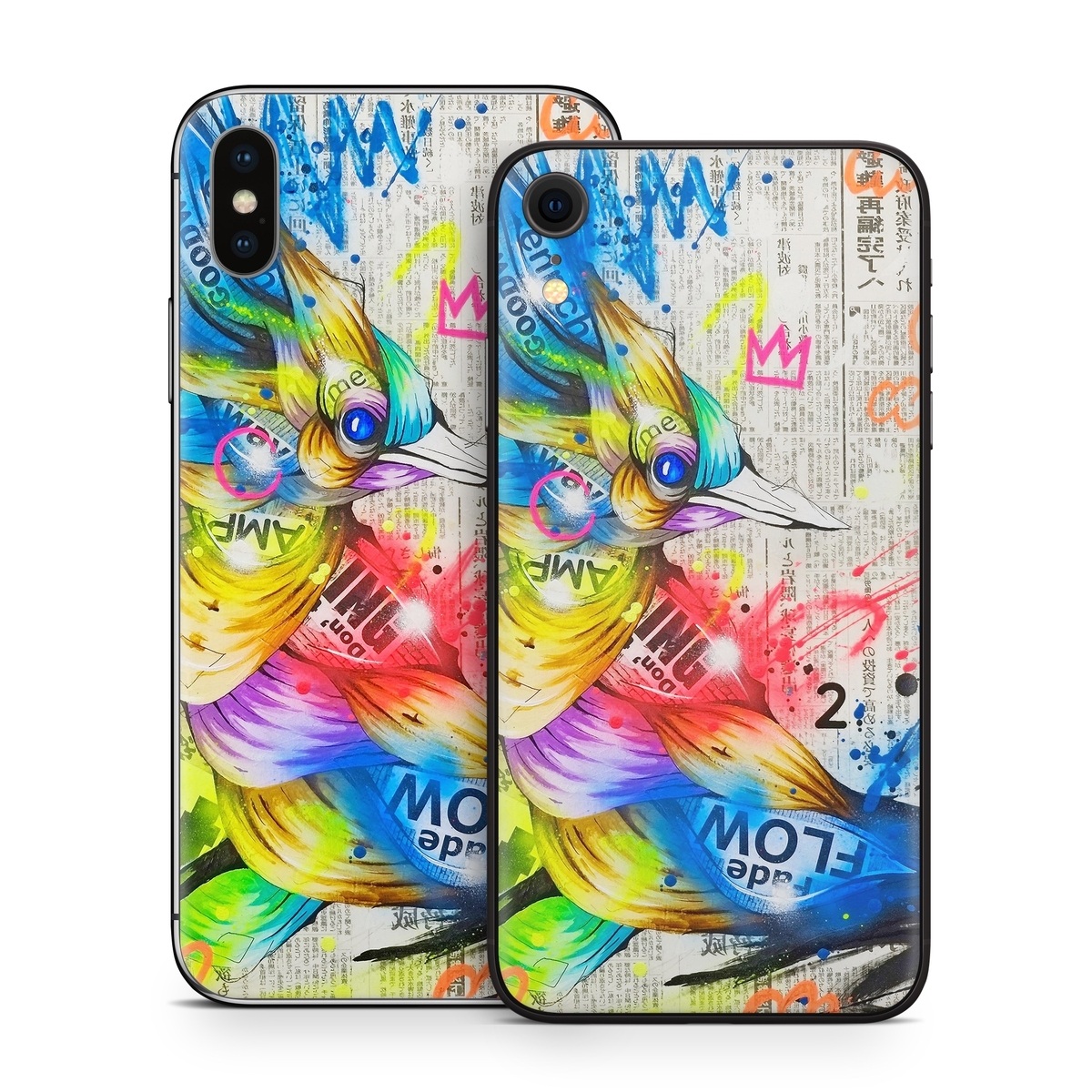 iStyles iPhone X Series Skin design of Graphic design, Font, Art, Graphics, Illustration, with blue, red, orange, pink, white, black, yellow, green colors, and tagged with animals, abstract, signs.