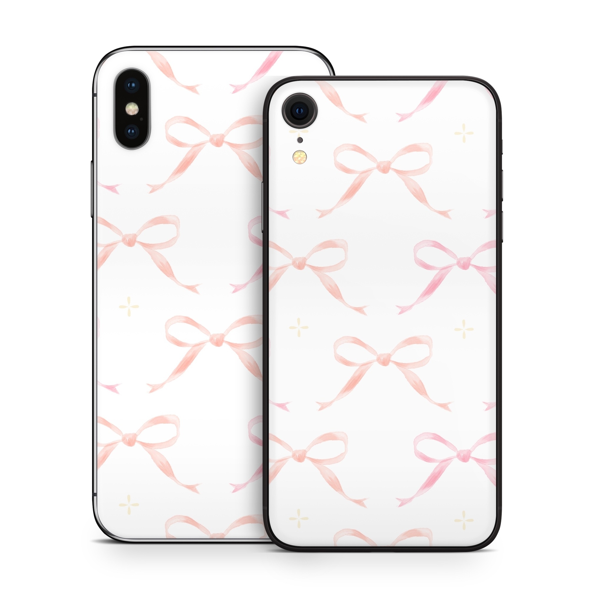 iStyles iPhone X Series Skin design of Textile, Rectangle, Pink, Motif, Font, Magenta, Symmetry, Pattern, Art, Peach, with white, pink, orange colors, and tagged with patterns, objects, ribbon, showlace, pretty.