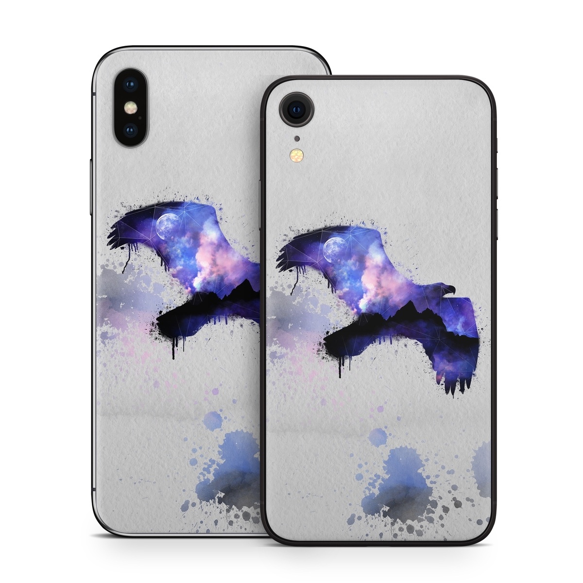 iStyles iPhone X Series Skin design of Blue, Watercolor paint, Purple, Water, Graphic design, Illustration, Art, Ink, Painting, Electric blue, with gray, white, blue, black, purple colors, and tagged with animals, nature, space, animals, bird, eagle, falcon, hawk, moon, nature, night, stars, watercolor.