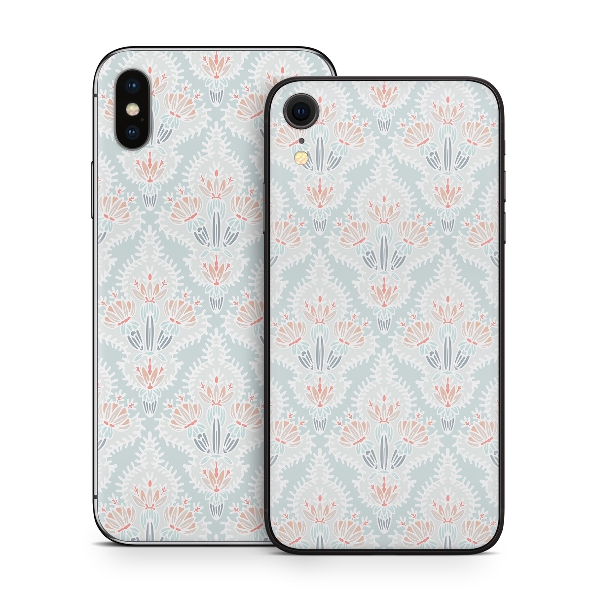 iStyles iPhone X Series Skin design of Pattern, Aqua, Line, Design, Textile, Wrapping paper, Pedicel, Dahlia, Visual arts, with blue, red, white colors, and tagged with patterns, flowers, cactus, floral, flowers, pattern, soft.