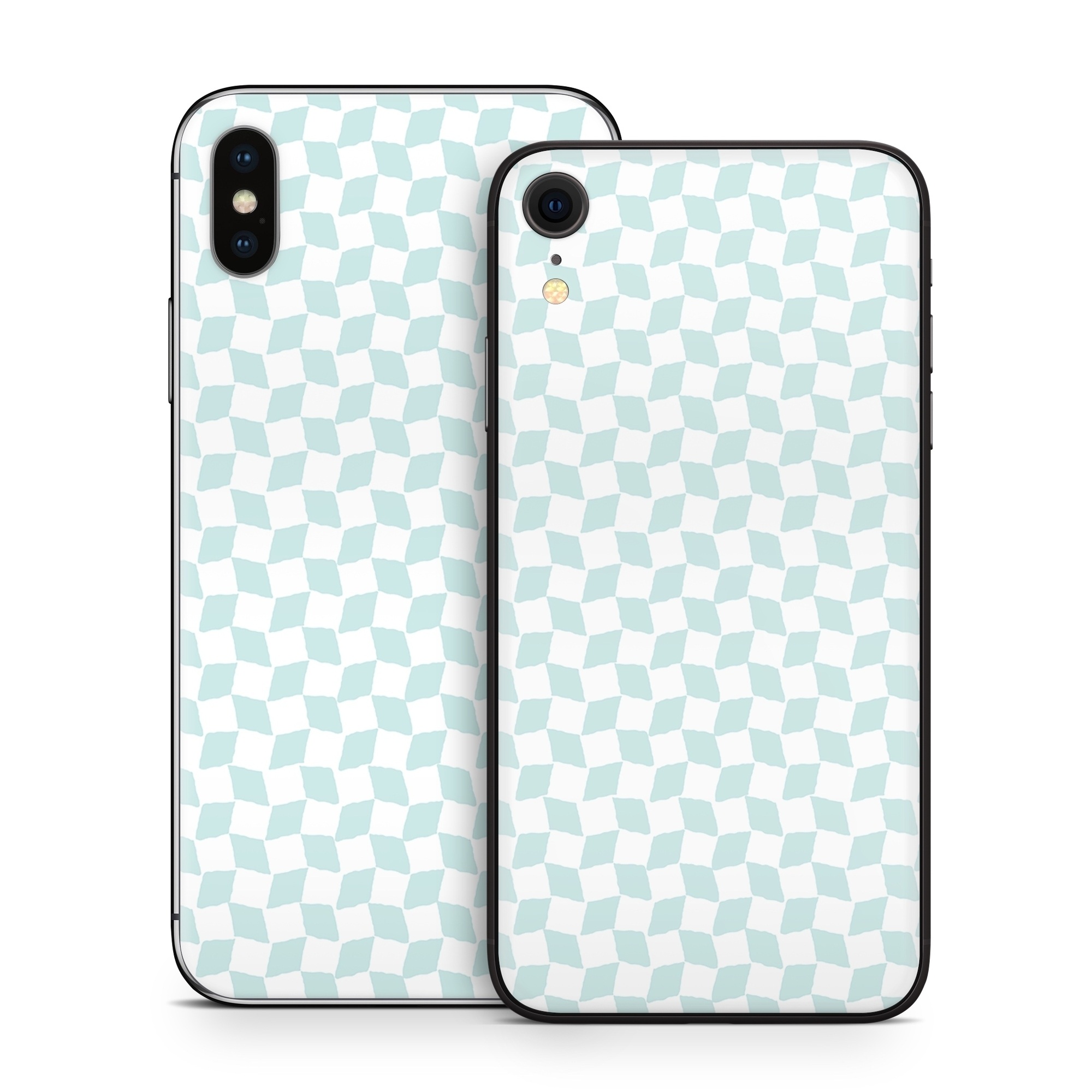 iStyles iPhone X Series Skin design of Blue, Azure, Art, Font, Aqua, Rectangle, Floor, Flooring, Material property, Symmetry, with white, blue colors, and tagged with patterns, checkered, pattern.