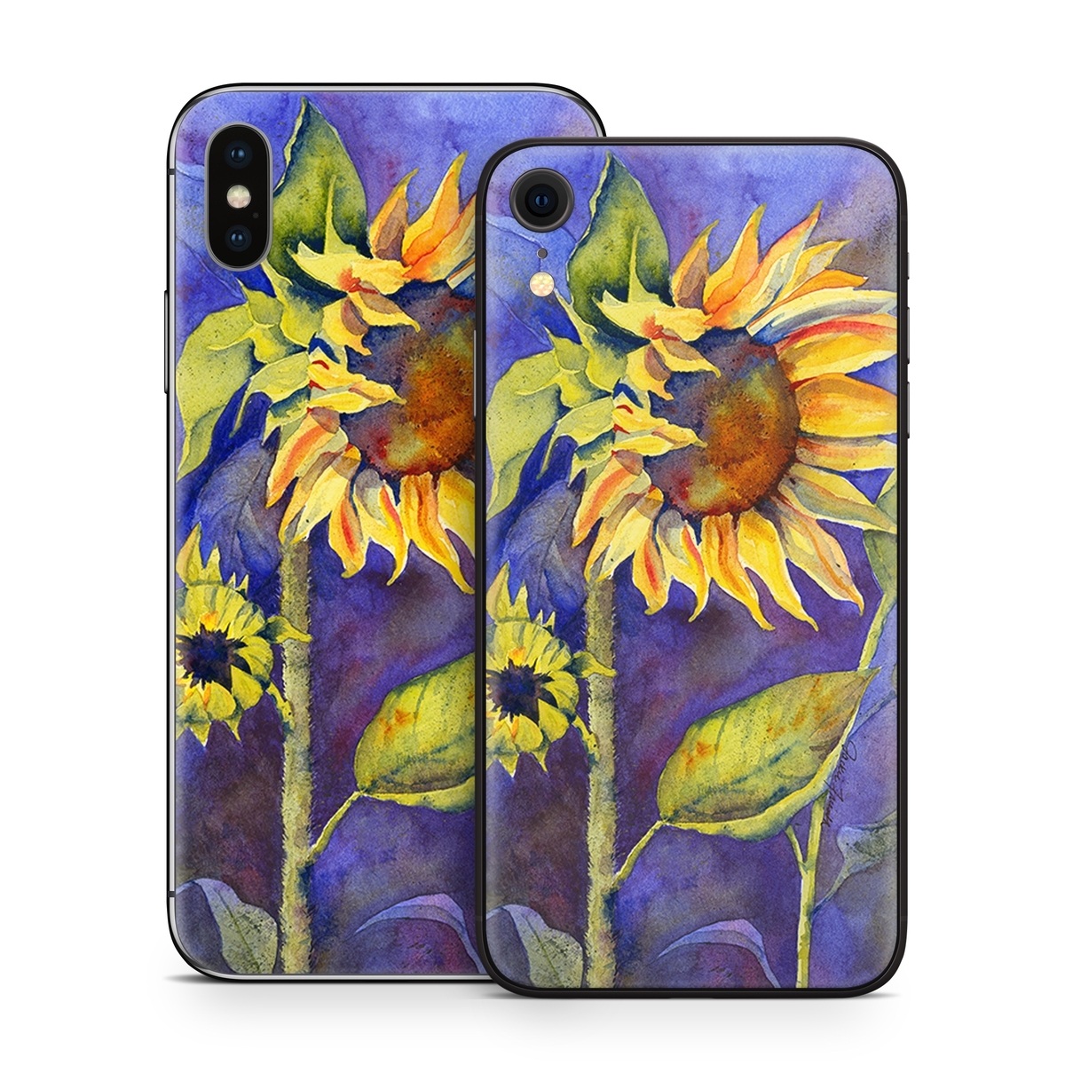 iStyles iPhone X Series Skin design of Flower, Sunflower, Painting, sunflower, Watercolor paint, Plant, Flowering plant, Yellow, Acrylic paint, Still life, with green, black, blue, gray, red, orange colors, and tagged with flowers, fineart.