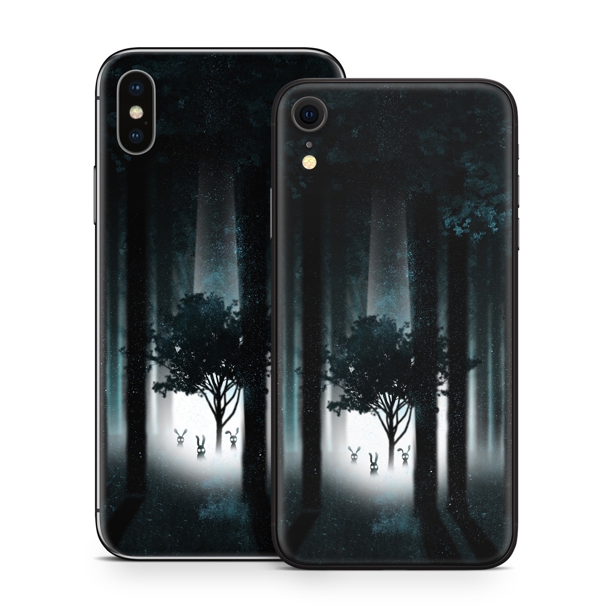 iStyles iPhone X Series Skin design of Darkness, Black, Nature, Tree, Natural environment, Forest, Atmosphere, Atmospheric phenomenon, Light, Natural landscape, with black, blue, white colors, and tagged with animals, nature, fantasy, space, aliens, creatures, fae, fairy, forest, ghosts, lights, monsters, rabbit, scary, trees, ufo.