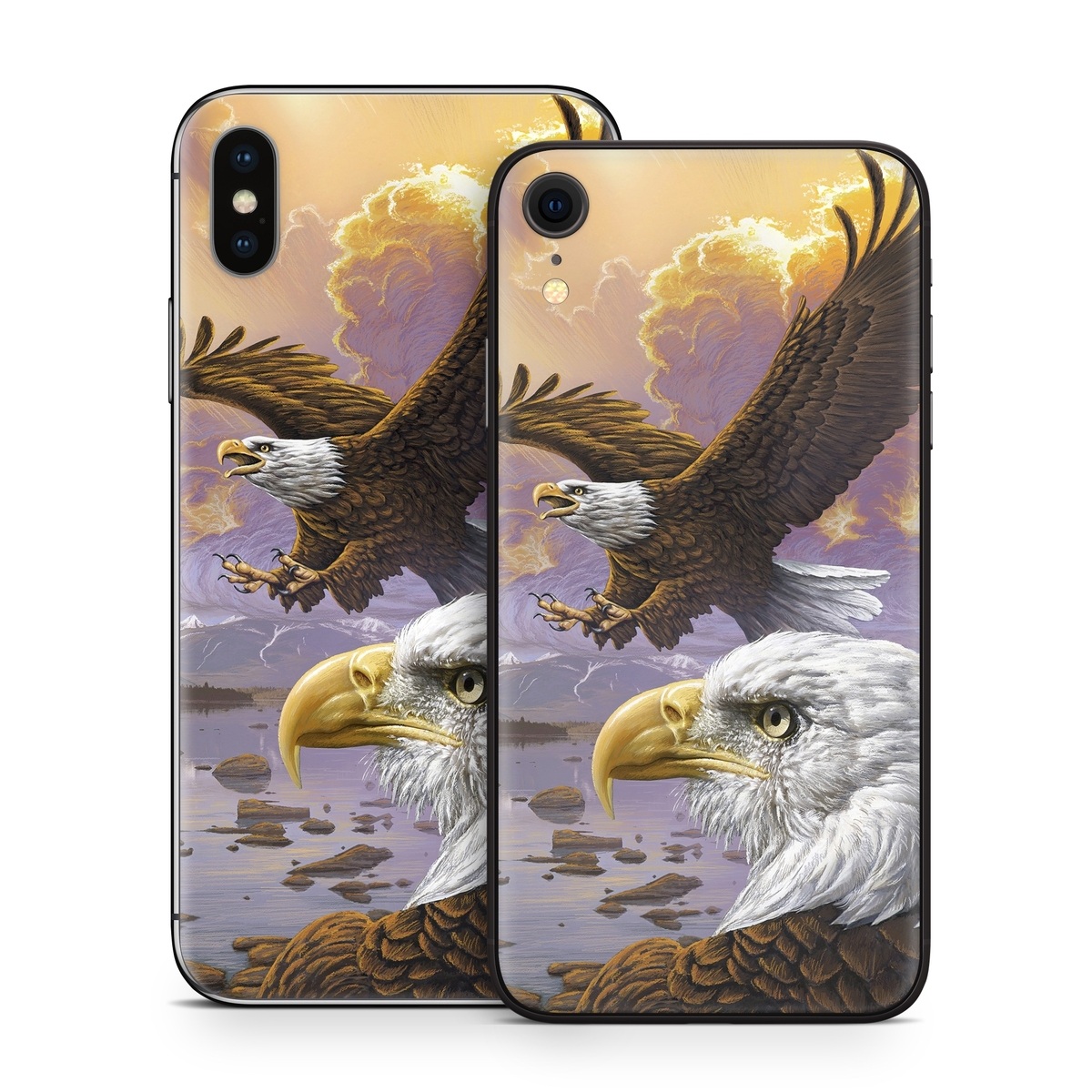 iStyles iPhone X Series Skin design of Bird, Bird of prey, Bald eagle, Vertebrate, Eagle, Accipitriformes, Accipitridae, Golden eagle, Beak, Hawk, with gray, black, green, red, purple colors, and tagged with animals, nature.