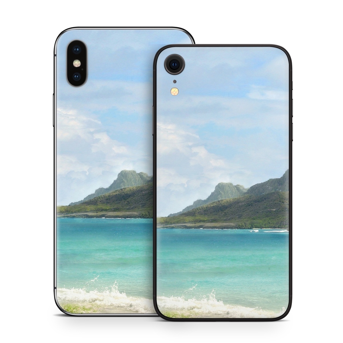iStyles iPhone X Series Skin design of Body of water, Tropics, Nature, Natural landscape, Shore, Coast, Caribbean, Sea, Tree, Beach, with gray, black, blue, green colors, and tagged with nature, fineart.