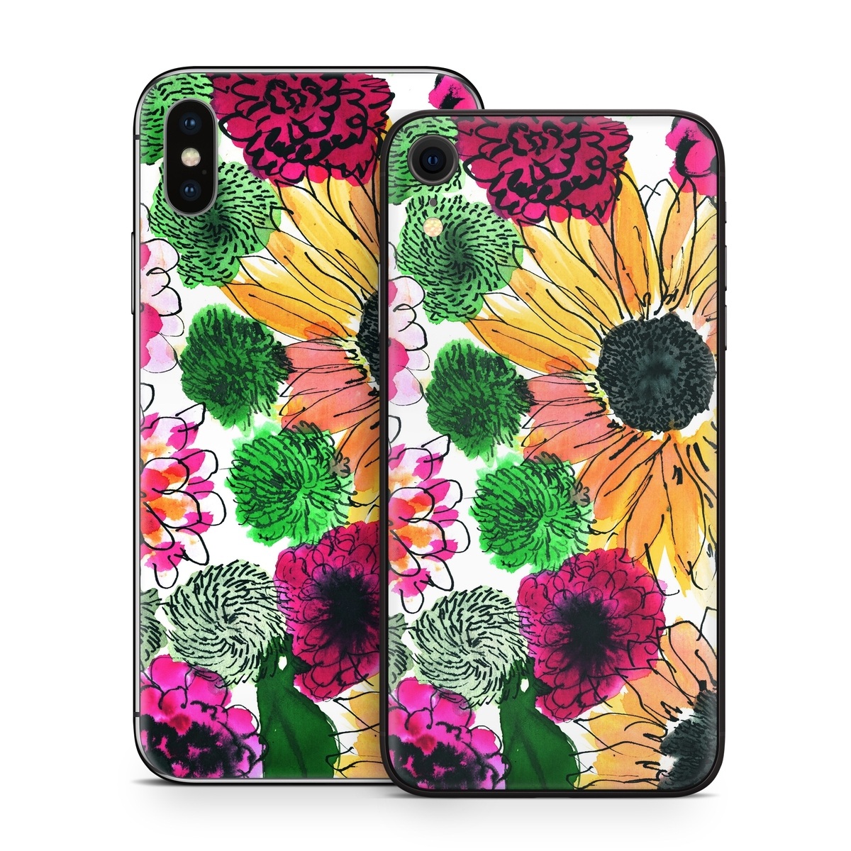 iStyles iPhone X Series Skin design of Flower, Floral design, Plant, Gazania, african daisy, Petal, Pattern, Botany, Wildflower, Design, with red, yellow, green, pink, black colors, and tagged with patterns, flowers, bright, colorful, flowers, spring, summer, sunflower, watercolor.