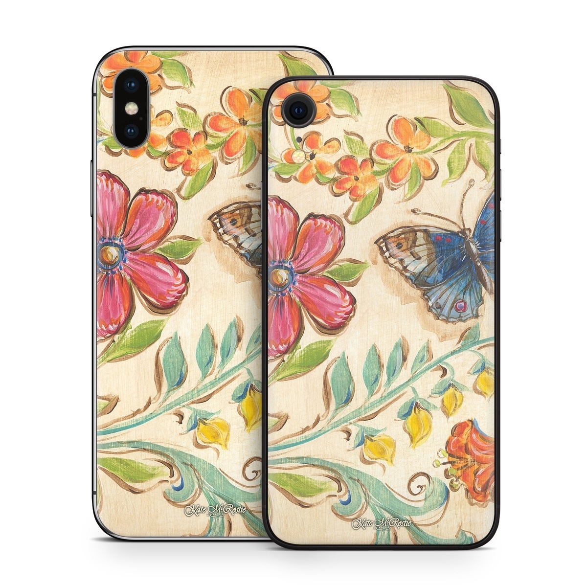 iStyles iPhone X Series Skin design of Butterfly, Moths and butterflies, Insect, Pollinator, Plant, Pattern, Watercolor paint, Wildflower, Visual arts, Brush-footed butterfly, with gray, pink, green, red, orange, blue colors, and tagged with flowers, patterns, animals.