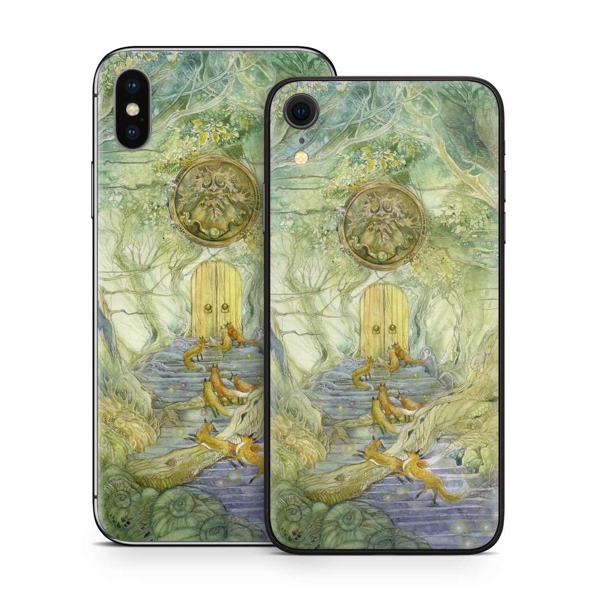iStyles iPhone X Series Skin design of Painting, Art, Mythology, Visual arts, Watercolor paint, Organism, Fictional character, Modern art, Landscape, Acrylic paint, with green, brown, red, yellow, blue, purple colors, and tagged with animals, nature, fantasy, animals, forest, fox, landscape, sci-fi, woods.
