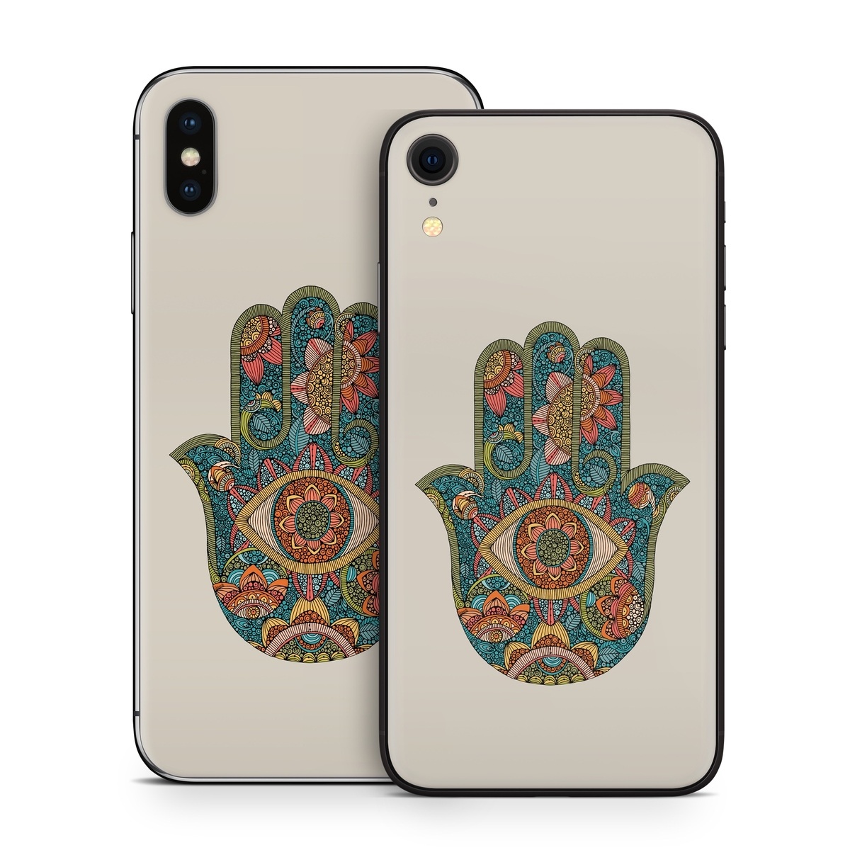 iStyles iPhone X Series Skin design of Art, Pattern, Symmetry, Circle, Font, Visual arts, Illustration, Painting, Symbol, Drawing, with blue, red, yellow, orange, green colors, and tagged with patterns, flowers, signs, people, evileye, flowers, hand, protection.