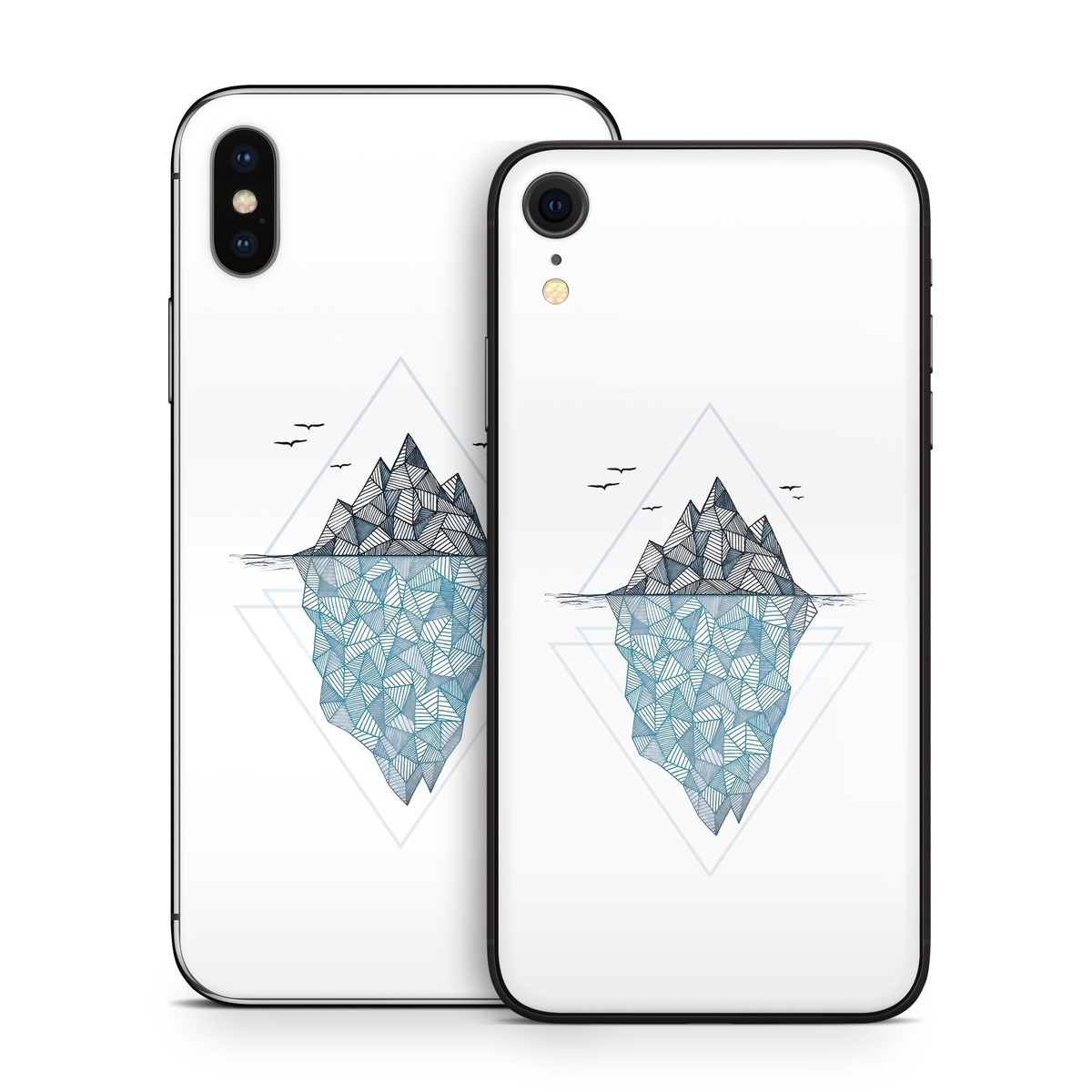 iStyles iPhone X Series Skin design of Line, Illustration, Design, Symmetry, Pattern, Triangle, Art, with white, black, gray, blue colors, and tagged with animals, nature, patterns, arctic, blue, cold, frost, ice, iceberg, snow, winter.