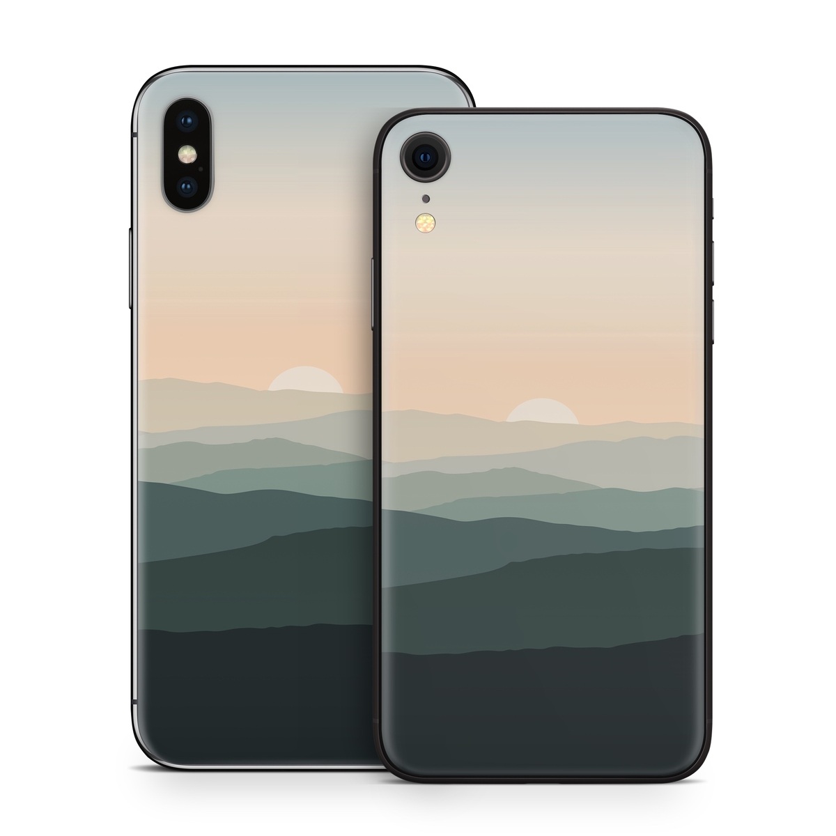 iStyles iPhone X Series Skin design of Sky, Mountain, Afterglow, Cloud, Highland, Dusk, Sunrise, Landscape, Sunset, Cumulus, with black, gray, white, orange, yellow colors, and tagged with nature, sunset, landscape, mountains, horizon.