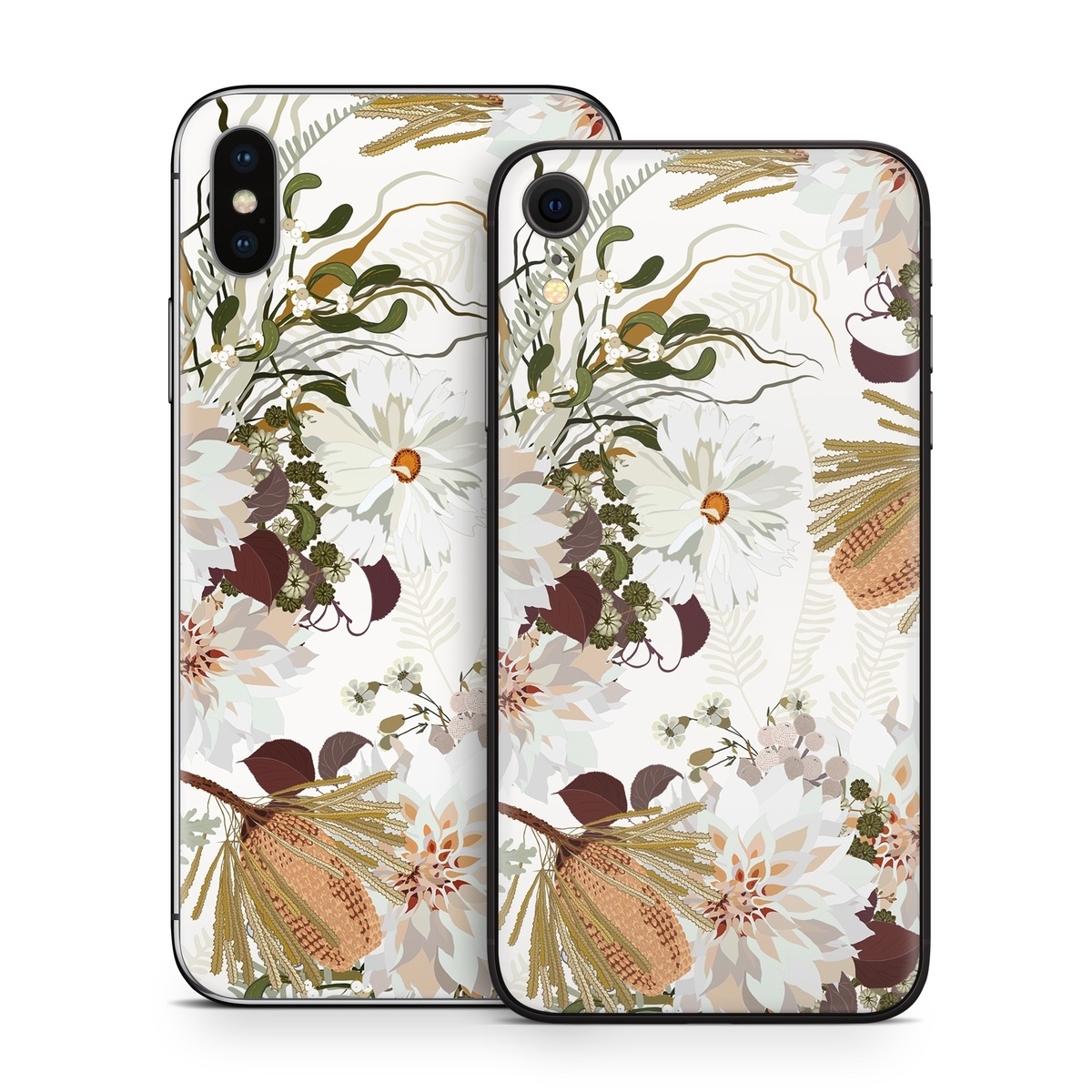 iStyles iPhone X Series Skin design of Flower, Botany, Plant, Floral design, Wildflower, Pattern, Wallpaper, Textile, Petal, Butterfly, with white, brown, green, gray colors, and tagged with nature, patterns, flowers, brown, cream, filigree, floral, flower, flowers, green, leaf, leaves, nature, neutral, outdoor.
