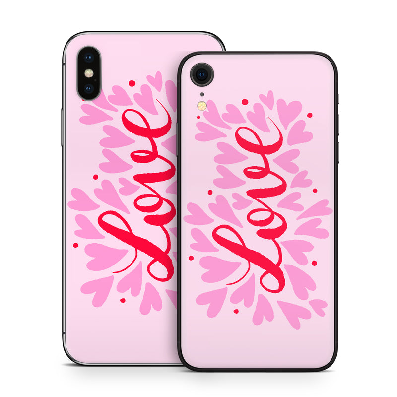 iStyles iPhone X Series Skin design of Plant, Pink, Font, Art, Magenta, Pattern, Logo, Peach, Event, Graphics, with pink, red colors, and tagged with signs, hearts, red, love, hearts.