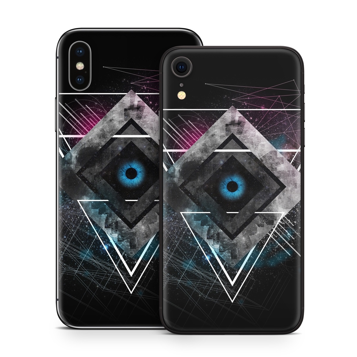iStyles iPhone X Series Skin design of Graphic design, Design, Pattern, Graphics, Illustration, Font, Circle, Triangle, Fractal art, Logo, with black, gray colors, and tagged with abstract, space.