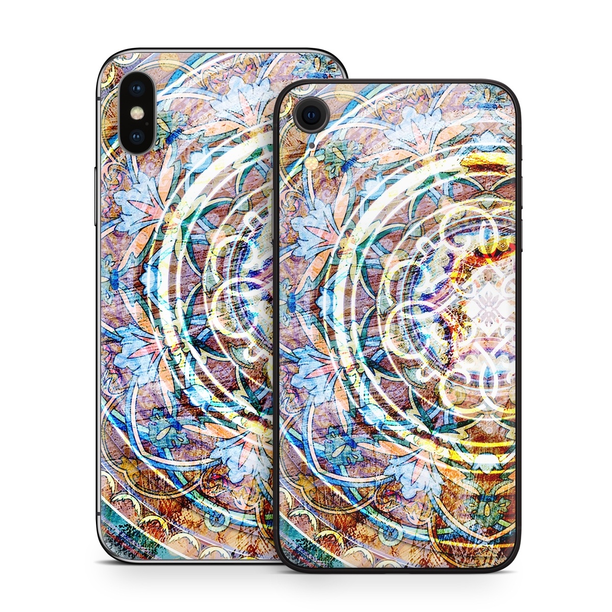 iStyles iPhone X Series Skin design of Circle, Ceramic, Tableware, with yellow, red, orange, white, blue, green, gray colors, and tagged with patterns, objects, aztec, medallion, tribal.