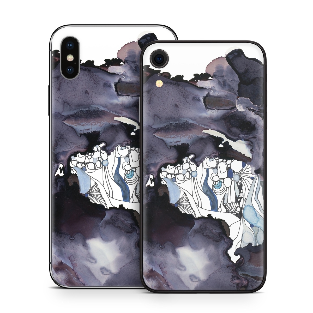 iStyles iPhone X Series Skin design of Watercolor paint, Illustration, Art, World, Paint, Cg artwork, Drawing, Graphic design, Animation, Rock, with black, purple, white, blue colors, and tagged with abstract, nature, abstract, purple, watercolor.