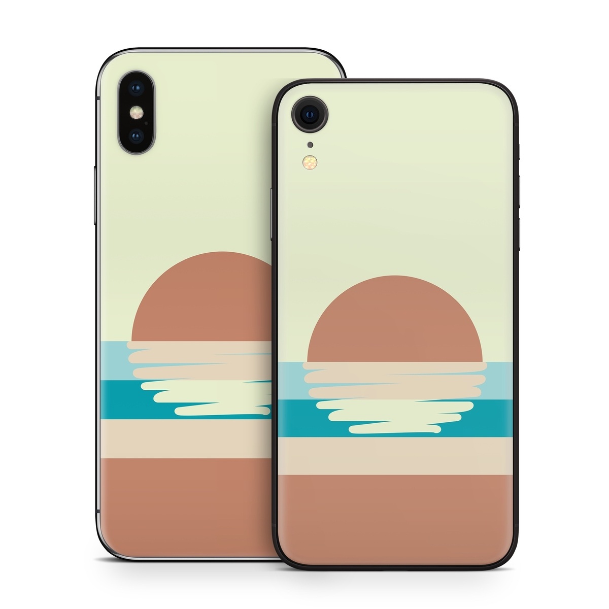 iStyles iPhone X Series Skin design of Head, Water, Font, Electric blue, Horizon, Circle, Art, Sitting, Leisure, Graphics, with blue, yellow, brown, orange colors, and tagged with nature, beach, sea, sunset, reflection, abstract.