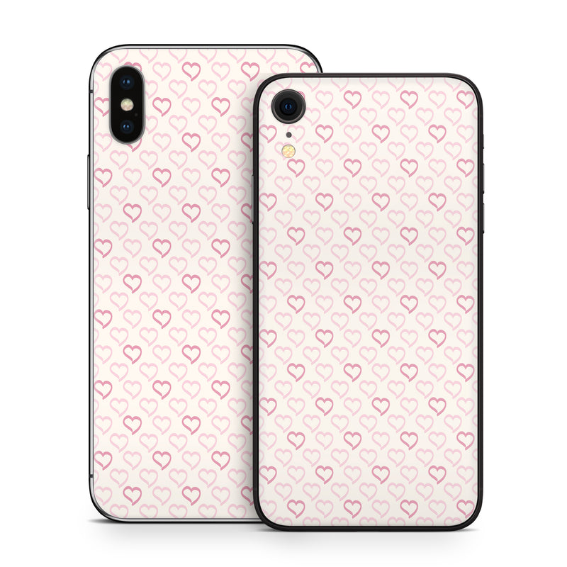 iStyles iPhone X Series Skin design of Grey, Pattern, Font, Circle, Magenta, Symmetry, Metal, Rectangle, Composite material, Flooring, with white, purple, pink colors, and tagged with hearts, patterns, pink, purple, heart, pattern, love, valentine.