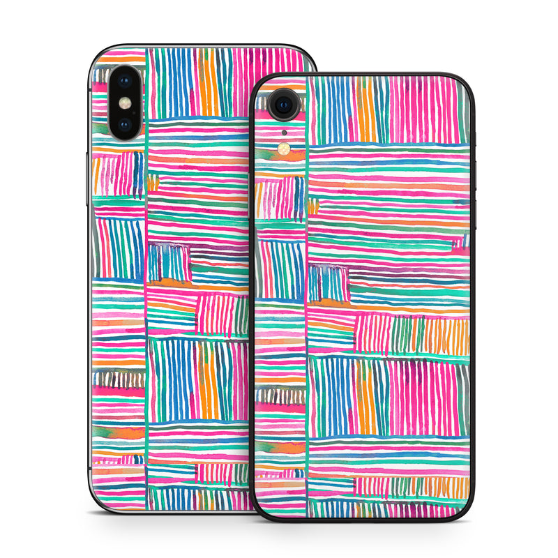 iStyles iPhone X Series Skin design of Colorfulness, Product, Rectangle, Azure, Textile, Art, Aqua, Material property, Magenta, Tints and shades, with white, pink, orange, green, blue, yellow colors, and tagged with patterns, stripes, pattern.