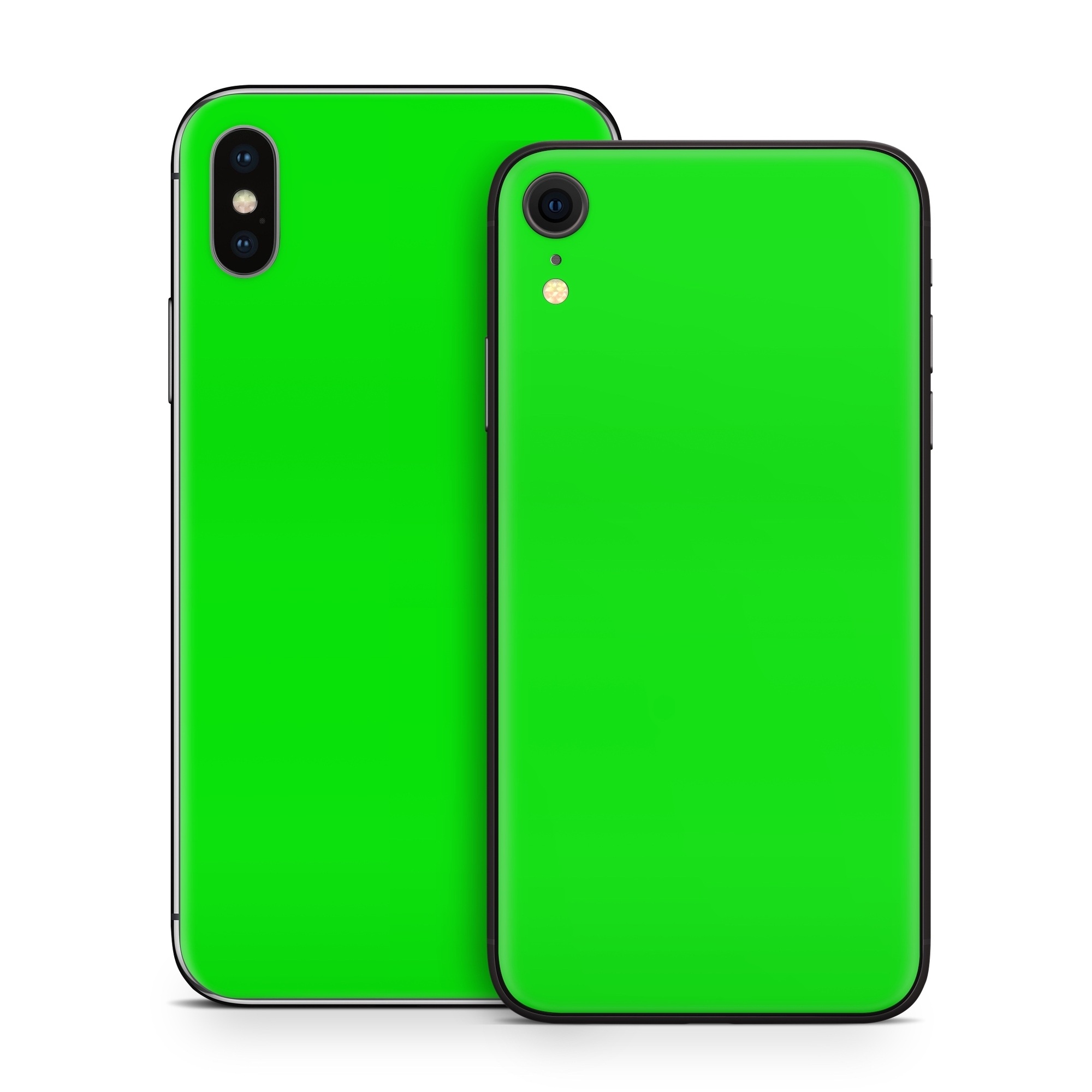 iStyles iPhone X Series Skin design of Green, Rectangle, Baize, Table, Font, Electric blue, Pattern, Symmetry, Magenta, Circle, with green colors, and tagged with solidcolors, green, slime, ghostbusters.
