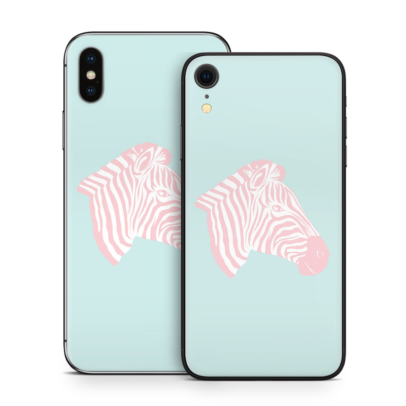iStyles iPhone X Series Skin design of Sleeve, Fin, Art, Terrestrial animal, Snout, Painting, Fish, Marine biology, Magenta, Pattern, with pink, white, blue colors, and tagged with patterns, animals, pink, stripes, zebra.