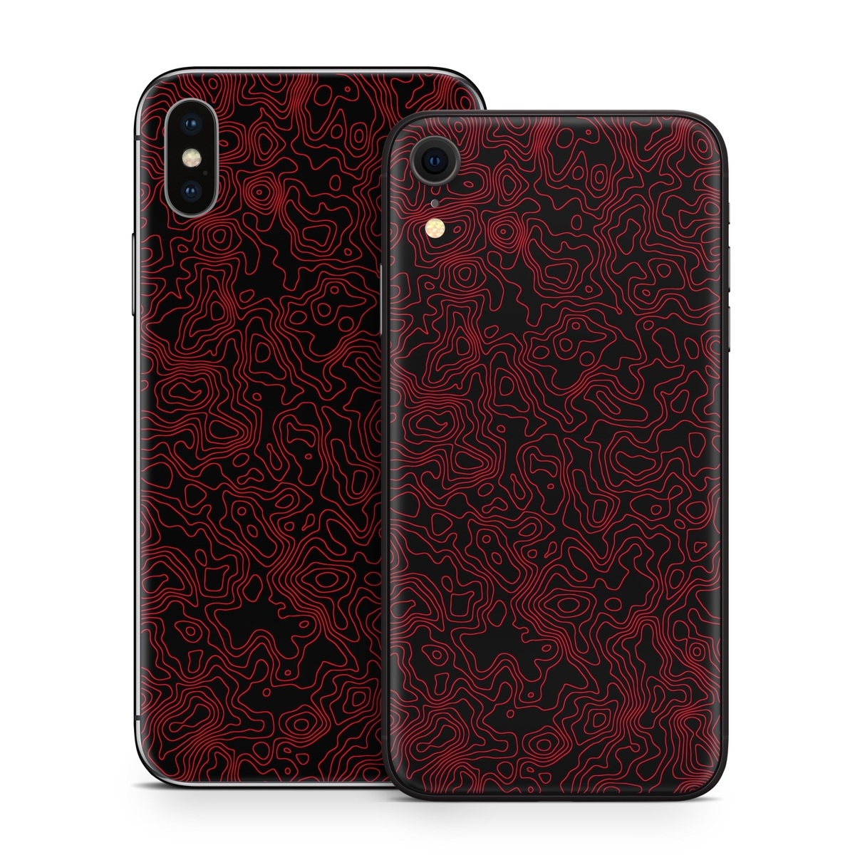 iStyles iPhone X Series Skin design of Pink, Art, Motif, Magenta, Font, Pattern, Symmetry, Rectangle, Circle, Electric blue, with black, red colors, and tagged with patterns, geography, map, outdoors, topo, topographic, topography, travel.