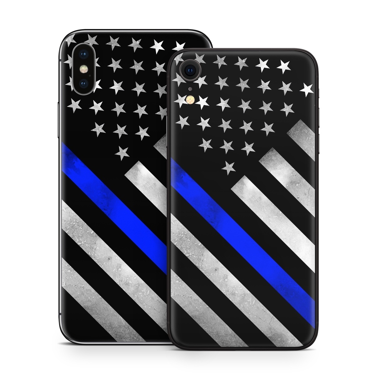 iStyles iPhone X Series Skin design of Flag of the united states, Flag, Cobalt blue, Pattern, Line, Black-and-white, Design, Monochrome, Electric blue, Parallel, with black, white, gray, blue colors, and tagged with flags, signs, firstresponder, flag, police, rescue, thinline.