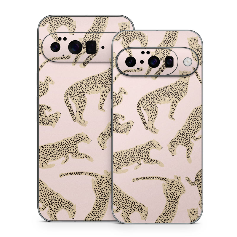 iStyles Google Pixel 10 Series Skin design of Hair, Vertebrate, White, Organ, Textile, Organism, Mammal, Felidae, Font, Line, with pink, yellow, black colors, and tagged with patterns, animals, cheetah, acinonyx, jubatus.