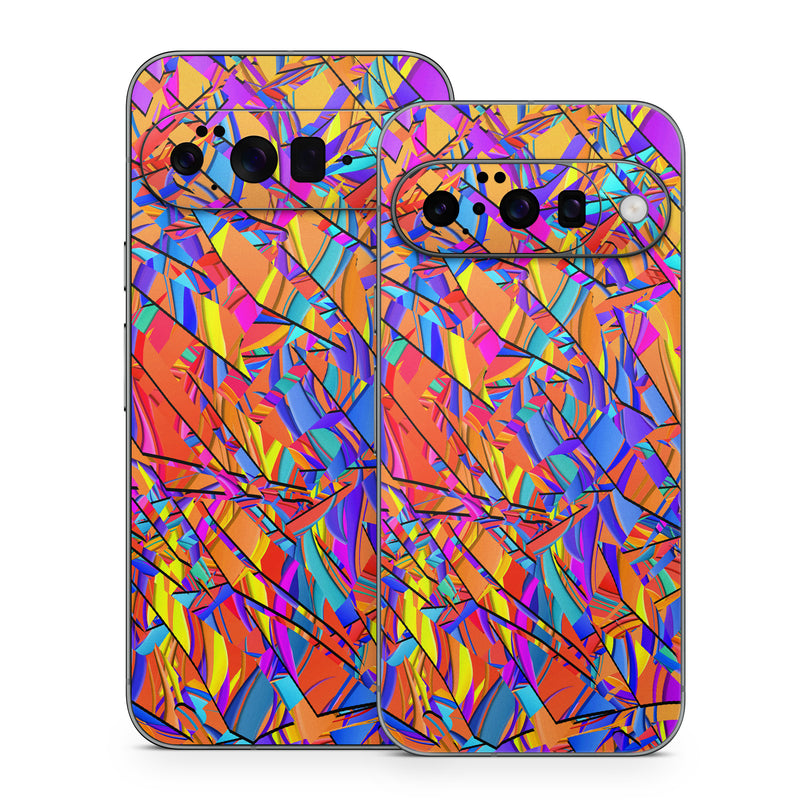 iStyles Google Pixel 10 Series Skin design of Pattern, Psychedelic art, Line, Visual arts, Art, with orange, yellow, blue, purple, pink colors, and tagged with patterns, bright, color, geometry, rainbow, stainedglass.