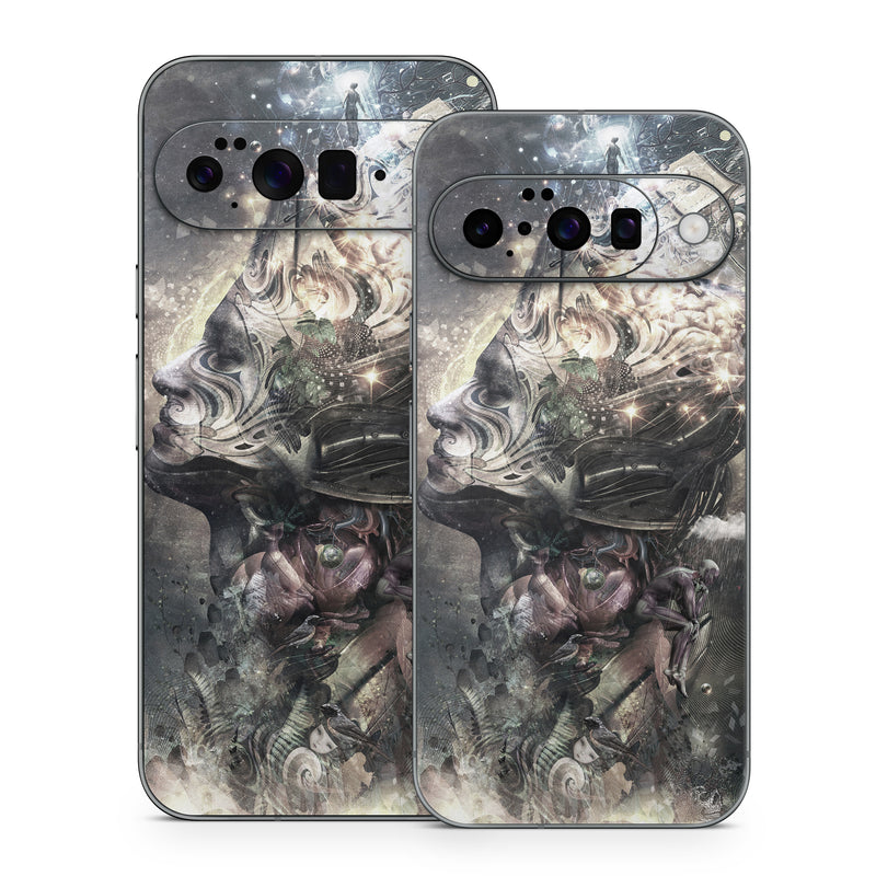 iStyles Google Pixel 10 Series Skin design of Space, Cg artwork, Art, Sky, Darkness, Illustration, Graphic design, Outer space, Graphics, Animation, with white, black, gray, yellow colors, and tagged with fantasy, space, celestial, fantasy, galactic, sci-fi, surreal.