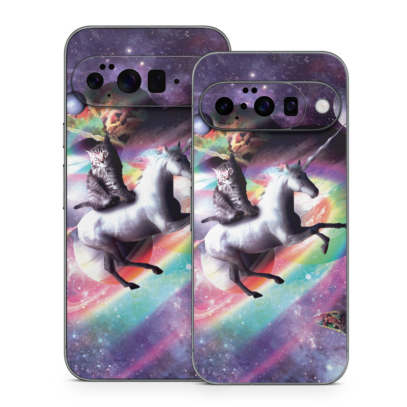 iStyles Google Pixel 10 Series Skin design of Illustration, Graphic design, Fictional character, Space, Sky, Astronomical object, Universe, Outer space, Art, Unicorn, with black, white, gray, red, yellow, green, blue, orange colors, and tagged with space, animals, fantasy, animals, funny, galaxy, lasers, random, space, weird.
