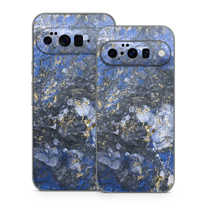 iStyles Google Pixel 10 Series Skin design of Blue, Water, Cobalt blue, Rock, Painting, Geology, Electric blue, Mineral, Pattern, Acrylic paint, with black, blue, yellow, white, gray colors, and tagged with patterns, lookslike, nature.