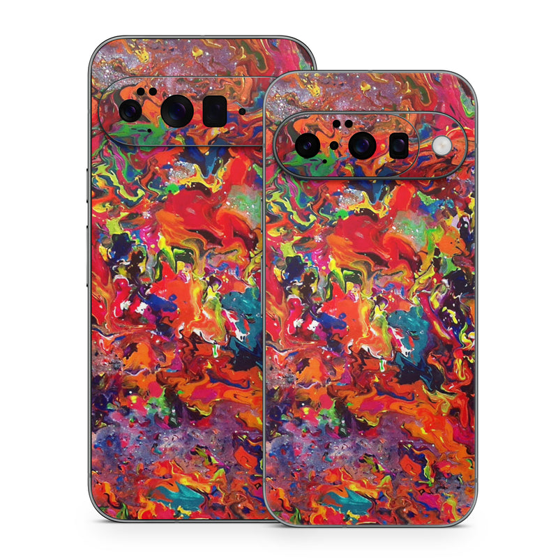 iStyles Google Pixel 10 Series Skin design of Colorfulness, Modern art, Acrylic paint, Painting, Visual arts, Art, Psychedelic art, Textile, Pattern, Paint, with red, yellow, green, orange, yellow colors, and tagged with patterns.