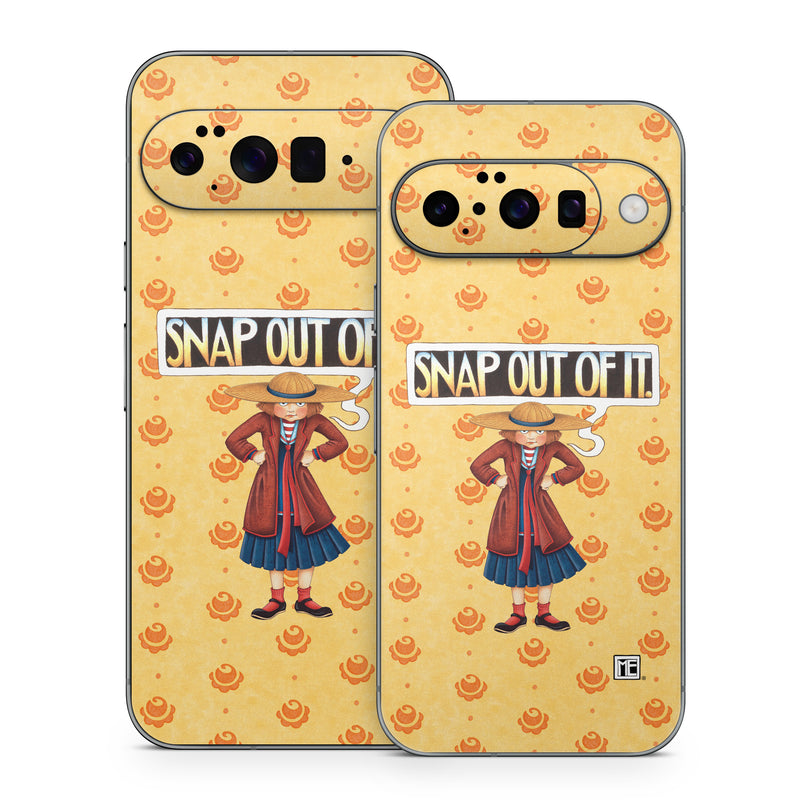 iStyles Google Pixel 10 Series Skin design of Cartoon, Illustration, Poster, Animated cartoon, Fiction, Anime, Art, Fictional character, Games, with pink, orange, black, red, gray, white colors, and tagged with people, patterns, signs.