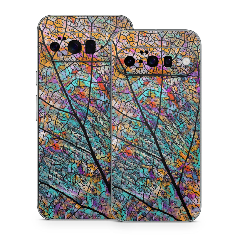iStyles Google Pixel 10 Series Skin design of Pattern, Colorfulness, Line, Branch, Tree, Leaf, Design, Visual arts, Glass, Plant, with black, gray, red, blue, green colors, and tagged with patterns, nature.