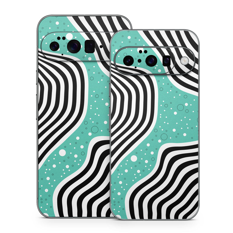 iStyles Google Pixel 10 Series Skin design of White, Rectangle, Art, Line, Aqua, Pattern, Electric blue, Visual arts, Font, Graphics, with white, black, blue, green colors, and tagged with patterns, sugar, dots.