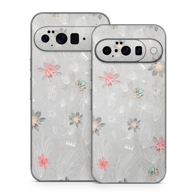 iStyles Google Pixel 10 Series Skin design of Pink, Pattern, Wrapping paper, Textile, Design, Wallpaper, Floral design, Plant, Flower, with gray, red, white, pink colors, and tagged with patterns, flowers, floral, flowers, gray, grey, lineart, nature.