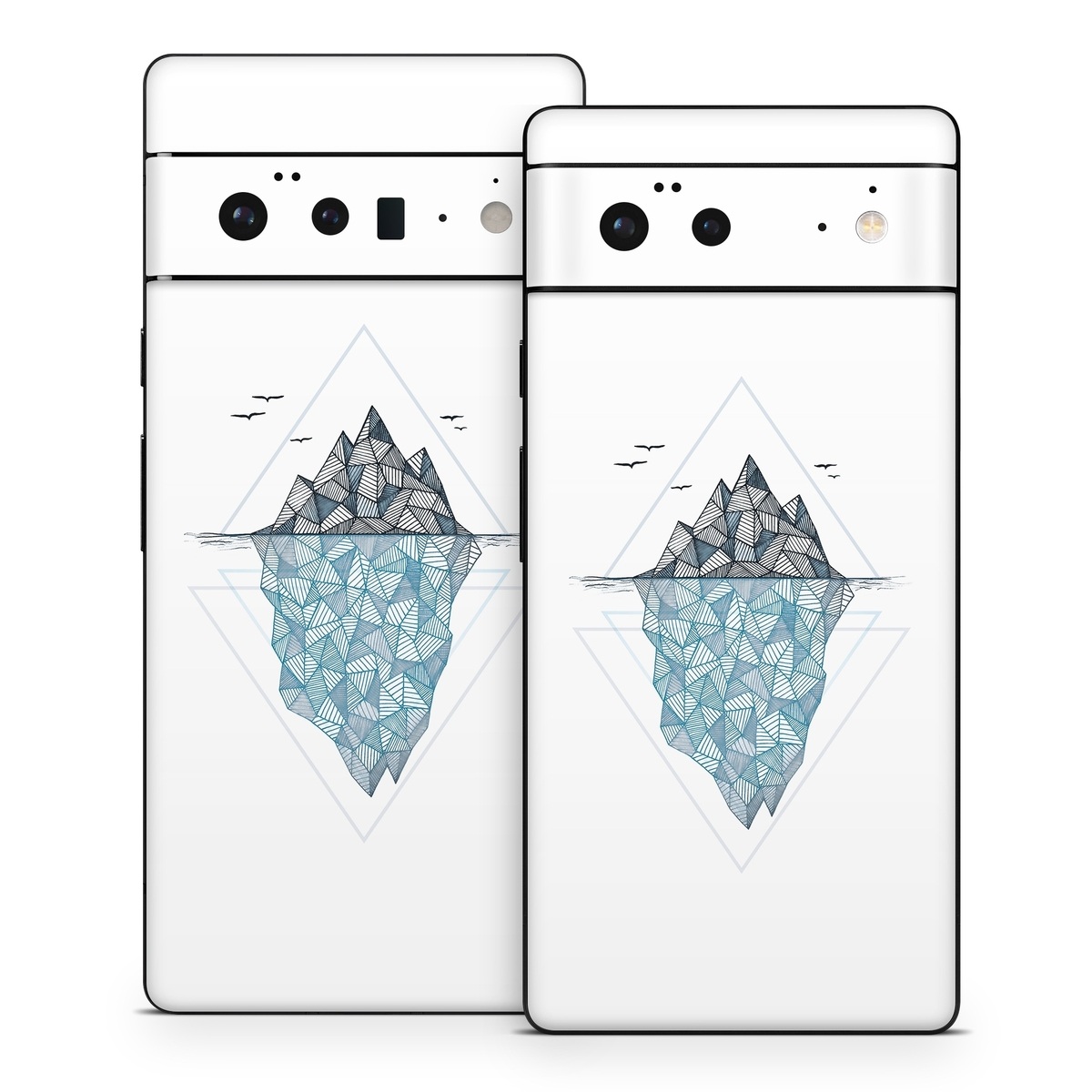 iStyles Google Pixel 6 Series Skin design of Line, Illustration, Design, Symmetry, Pattern, Triangle, Art, with white, black, gray, blue colors, and tagged with animals, nature, patterns, arctic, blue, cold, frost, ice, iceberg, snow, winter.