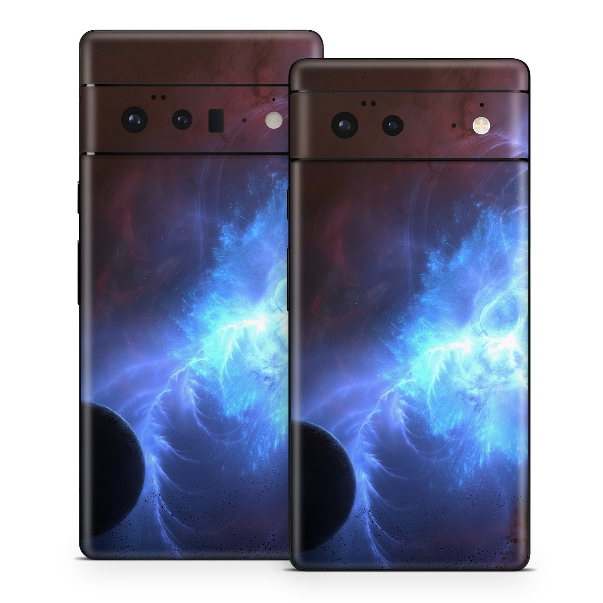 iStyles Google Pixel 6 Series Skin design of Sky, Atmosphere, Outer space, Space, Astronomical object, Fractal art, Universe, Electric blue, Art, Organism, with black, blue, purple colors, and tagged with space.