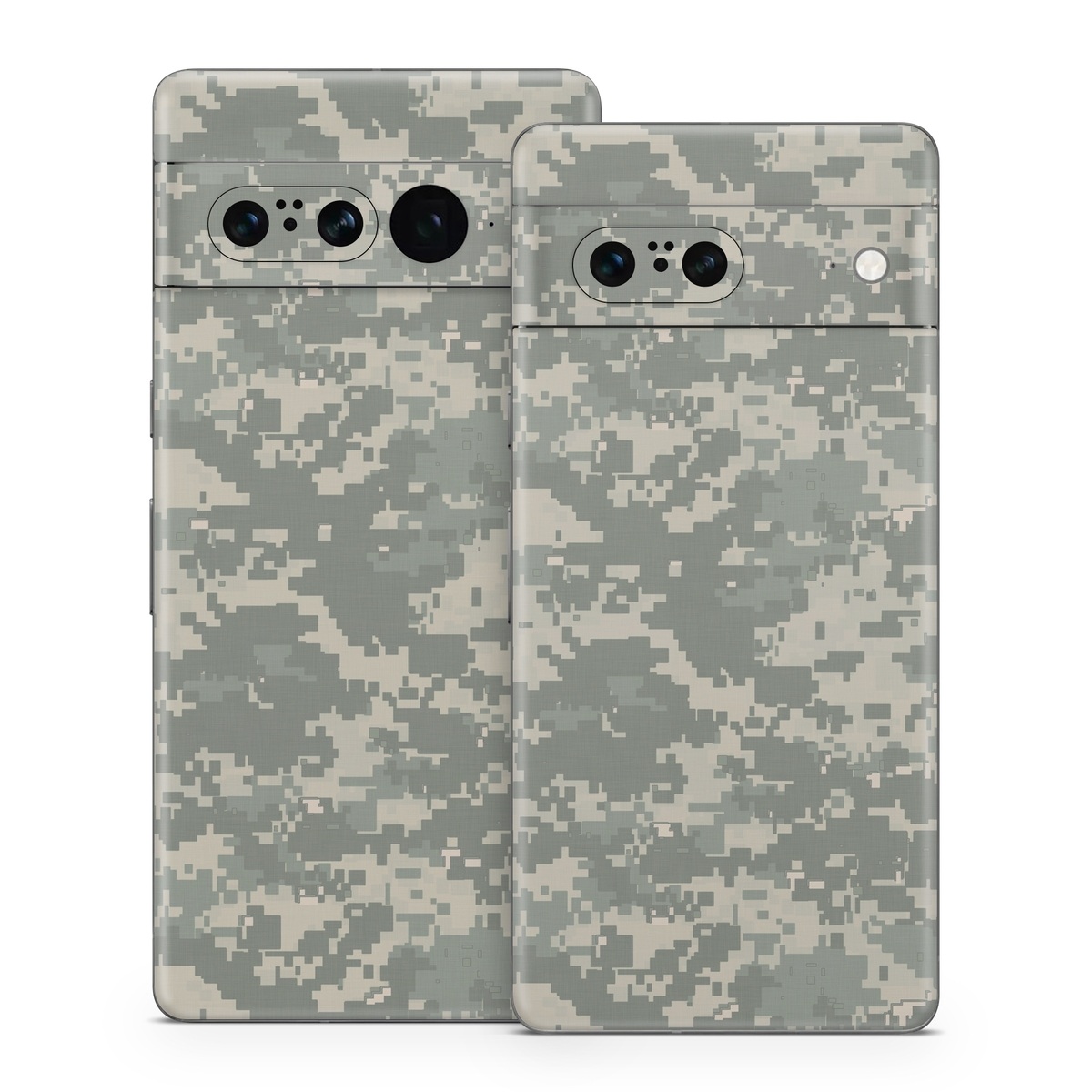 iStyles Google Pixel 7 Series Skin design of Military camouflage, Green, Pattern, Uniform, Camouflage, Design, Wallpaper, with gray, green colors, and tagged with military, lookslike, patterns.