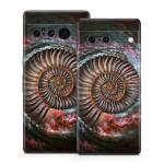 iStyles Google Pixel 7 Series Skin design of Spiral, Fractal art, Vortex, Circle, Art, Ammonoidea, with black, brown, red, white, blue, green colors, and tagged with animals, patterns, space, celestial, galactic, galaxy, outerspace, sci-fi.